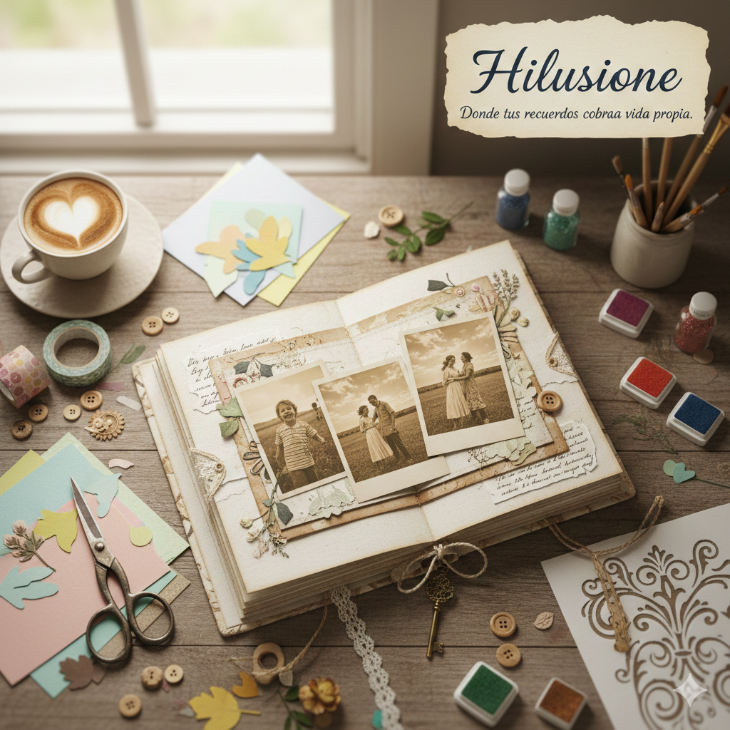 En Hilusione, transformamos momentos fugaces en tesoros tangibles. A través del scrapbooking y las manualidades, ponemos papel, color y alma a tus historias para que no solo las recuerdes, sino que las vuelvas a vivir.